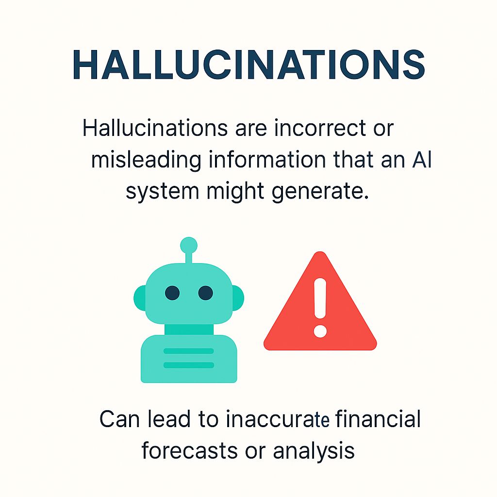 When AI makes stuff upâconfidently. It might cite fake data or invent sources. Itâs not being malicious; it just doesnât know whatâs real unless it was trained on it.